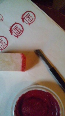 人が来ない間に彫ったハンコ〜。 年賀状に使えるかな!