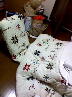 夜は、お母さんと一緒に、ニトリでこたつ布団を買ってから、近くのスーパー銭湯に行ってきました!こたつ布団は、店に入ったときに「かわいい!!!」と一目ぼれしたお布団。他のよりちょっと高めだったけど、でもいいんだ!可愛かったからいいんだ!!5年使って、薄汚くなってしまっていた座椅子のカバーもおそろいで買いました!このカバー見て作れば、夏用の座椅子カバーは自分で作れるぞー☆