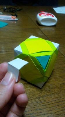 そうそう。ユニット折り紙は、角が付いて、サイコロに近い形になりました(`・ω・´)キリッ