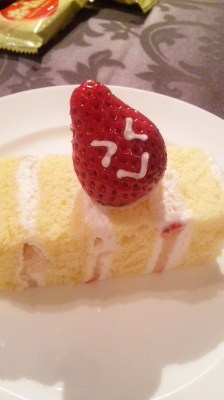 分けられたケーキにも、ちゃんと、可愛い顔付きイチゴが乗ってました!