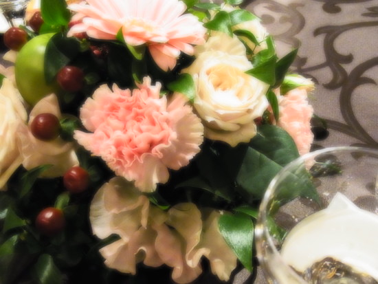 新婦さんが知り合いだったのですが、最初のプロフィールビデオが面白くって!新郎さんは普通の写真なのに、新婦さんの写真だけ、全部合成で…いいんか?!みたいな(笑) テーブルは、mixiの人を集めてくれてたので「お名前は…?」「えっと、どっちの名前を…?」みたいな会話を繰り広げておりました。どっちの名前って…ねぇww