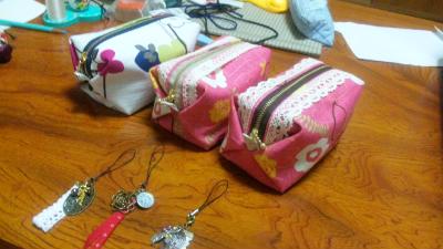 ポーチ3つと、ストラップ☆ポーチは、爽やかカラーも作ってみた!