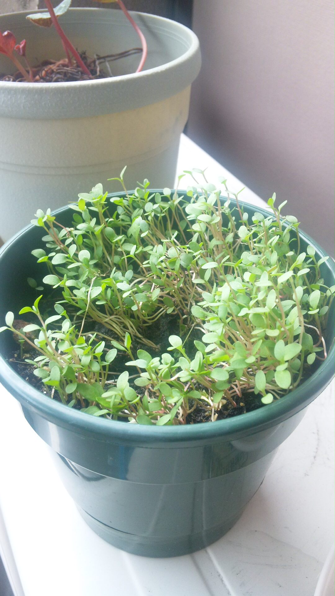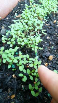 間引いた子たちが、意外とぴんしゃんしてたので、家にあった空の鉢に放り込んだら、これまた、意外と根付いた感じ!家の子は、種取るように育てよう〜♪