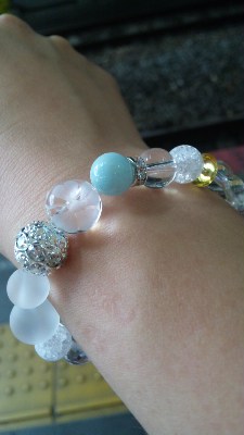 納品行って、自分の欲しいものも買っちゃった♪夏らしい、爽やかな数珠ブレス!クローバー付きなんて、凄い可愛い!!(o≧▽≦)o
