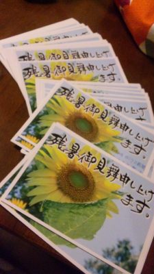 父宅に着いて、今日は特に予定がなかったので、お子様あての残暑見舞い書き上げた!手が死にそう…!