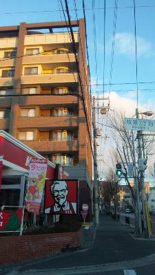 明るいけど、日の出前の出勤ツライ(>ω<`)…とか思ってたら、歩いてる間に、山の上の方から明るくなって、いよいよビルにも朝日が当たりだしたら、看板とか電柱の影か、ビルの側面の、ほぼほぼ水平の位置にできてた!マクド○ルドの看板の影も、うつっとる(笑)
