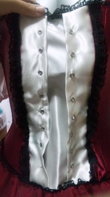 前の編み上げと、裾レース付けた!