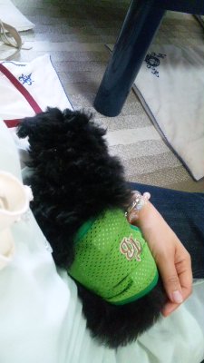 やらなきゃやらなきゃと思ってた、リボンにスナップも付けた!これで、ホントに完成や〜!!(≧∀≦)