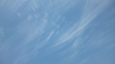 あんまり見事に、箒で掃いたような箒雲だったので、思わずパシャリ。正式名称は巻雲やったかな?