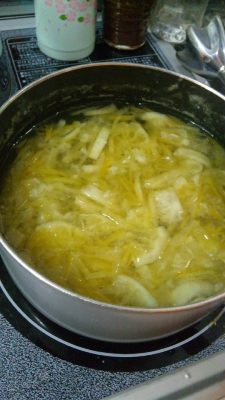 あと、食べやすいように、皮を小さく切ったら、灰汁取りの時に、皮も取ってしまう弊害発生!