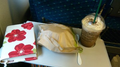初めて、新大阪のスタバに寄ったー!さ、しゅっぱーつ!(≧∀≦)