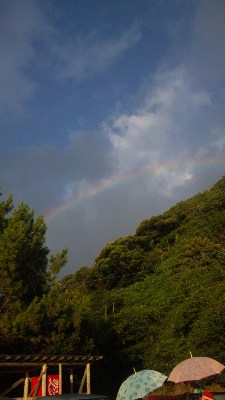 西部林道を抜けた後、ウミガメの産卵地になっている海岸へ。このアタリで、バラバラと雨が降り出して、すごいくっきりとした虹が見られました!副虹も出てた!!