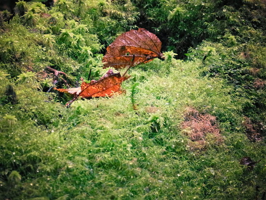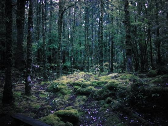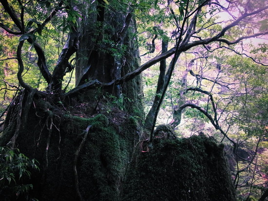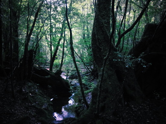 雨にぬれて歩いたのは大変でしたが、雨にぬれた苔や森は、確かに神秘的で、よかったなーと。また、ずーっと曇天っていうんじゃなくて、雨がザーザー降ってるのに日が差したりして、雨にぬれた森に木漏れ日が差すとか、ホントにきれいだったんだよ!幹を流れ落ちる水とか、普段は見られないものが見られたし!