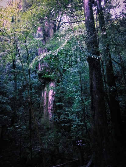 屋久島では、推定樹齢1000年以上のものを屋久杉、1000年未満のものを小杉と呼ぶのだそうで、こちらは、屋久杉。仁王様ということで、当然もう一本、吽形があったのですが、そちらは、倒れてしまったそうで、倒木の切り株が残っていました。