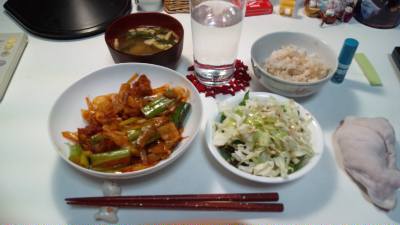 つくねを作ろうと思っていたのだけど、寒さに挫けて買い物に行かなかったので、家にあったもので豚キムチ!