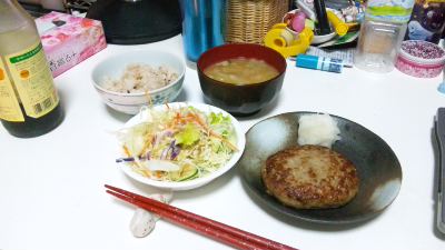 冷凍ハンバーグに、大根おろしを添えて、和風ハンバーグ!親指を擦ってしまいますた(笑)