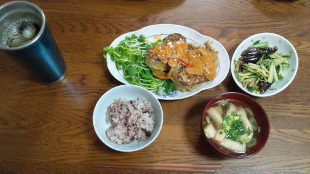 タネが緩すぎて、全く固まらなかったので、たまたまあった、シリコン型に流し込んで焼いたので、ハート型になったハンバーグ(笑)