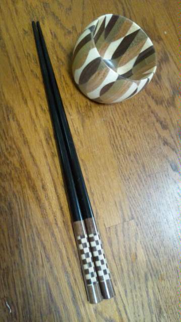 箱根で寄せ木のお箸とぐい呑み買った〜(*´∇`*)これから大事に使うです!(≧∀≦)