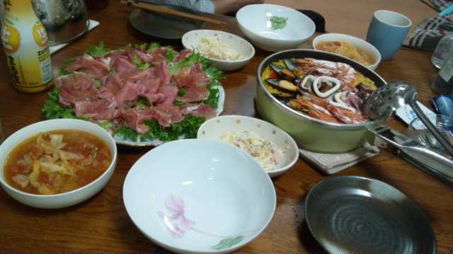 帰りにパエリアの元をスーパーで見つけたので、パエリアでぱーりー☆