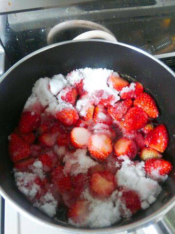 イチゴが安かったので、イチゴジャム作り☆真っ赤なイチゴが沢山で幸せ~(*´∀`*)