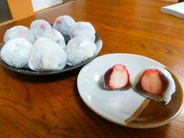 昨日のいちご大福が、イチゴが小さすぎたので、リベンジ!中のいちごが、透けて見えるサイズにしてみました(*´ω`*)