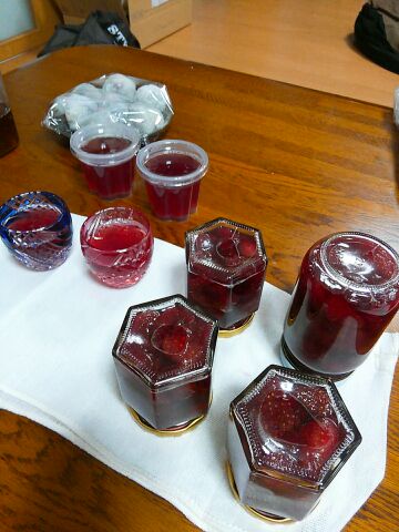 実は、我慢出来ずに買ってしまったイチゴで、今度こそ最後のイチゴジャムを作った!!灰汁とりした汁で、ゼリーも作ったので、(初挑戦!)固まるのを、ワクワクしながら待ってるの(≧ω≦)
