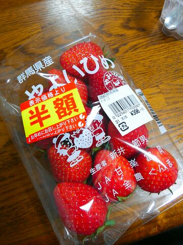 いつも買うイチゴの倍の値段のが、半額だったので購入!!やっぱ、形が良い!!