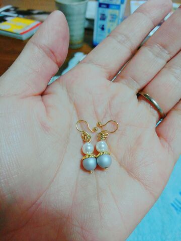 余ったパールを使いたくて、Tピンなるものを買ってきて、簡単ノンホールピアスを作ってみた~(≧ω≦)