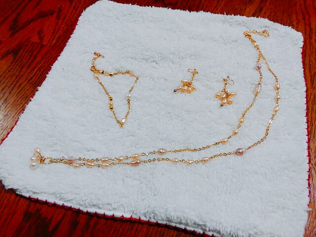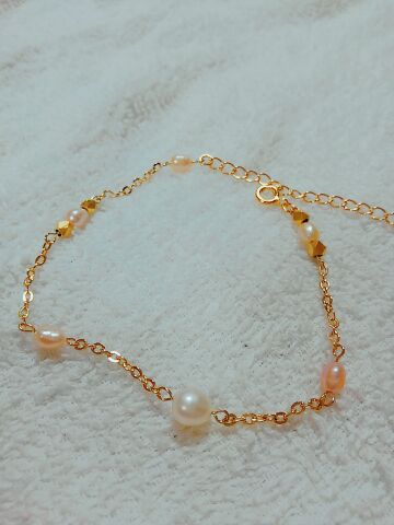 通販で頼んでた淡水パールが届いたので!ブレスレット作ってみた(*´ω`*)