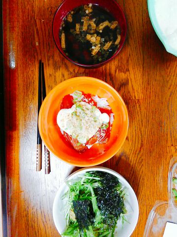 晩御飯は漬けまぐろに山掛け風に、ガッテンでやってたクリーム豆腐をかけてみた!