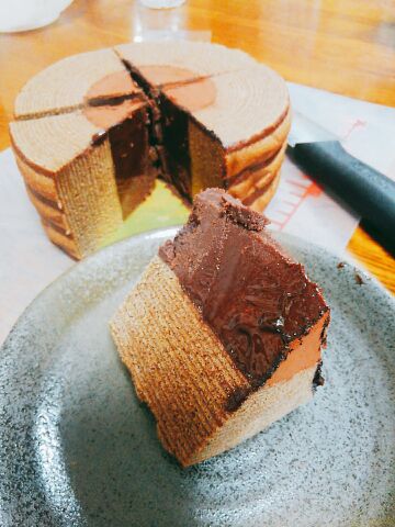 執事の館のチョコクーヘン、やっと切りました!(≧ω≦)