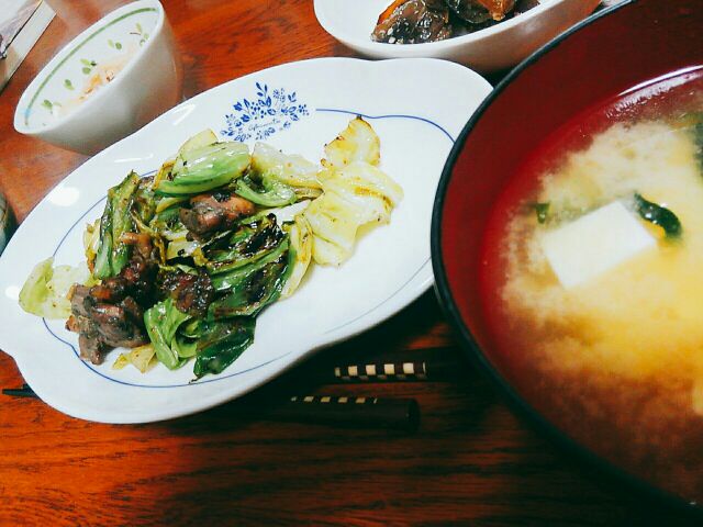 今日の晩御飯は、前日すずさんさら頂いたじどっこの炭火焼きとキャベツを炒めてみました!ゆず胡椒がきいてて、美味しかった~(*´ω`*)