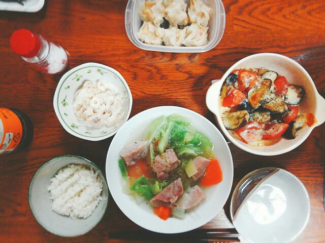 今日の晩御飯は塩豚のポトフと昨日の残り物。塩豚ポトフは簡単でウマーなのがよし!