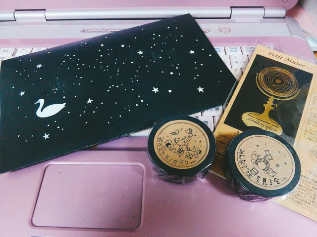 こないだ帰省した際に、梅田の阪急百貨店でやってた天体観測展に行ってきた(≧ω≦)つゆこさんの作品集と、かめいち堂さんのマステと、何かステキな金属の組み立てフィギュアみたいなの!満足(*´ω`*)