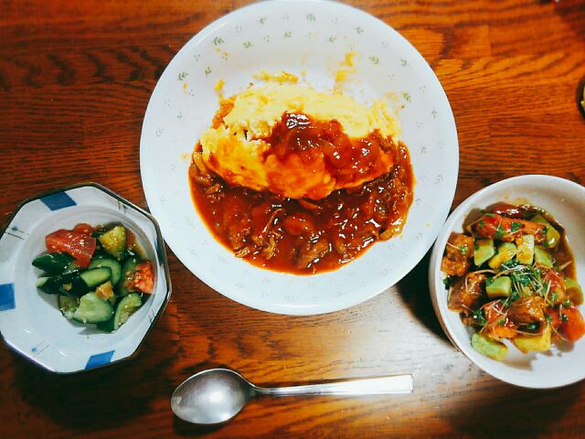 今日の晩御飯はハヤシソースオムライス!