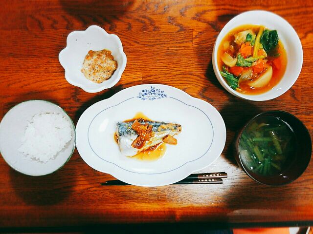 メインは、スーパーで半額だった、サバの味噌煮~♪