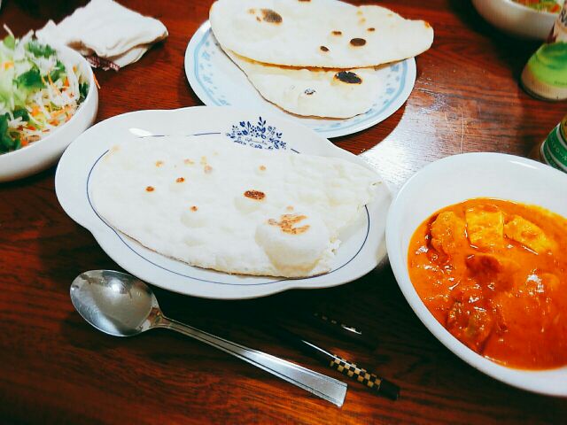 最後の晩御飯のレシピで、バターチキンカレー!(*´ω`*)そこそこ簡単で、美味しかった♪ナンは、無印のキットで作りましたん(*´ω`*)