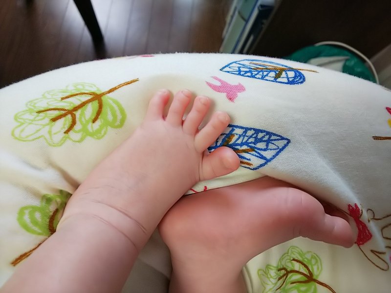 お食事中のお坊ちゃんの、おみ足。
