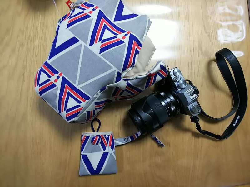 新しく買った望遠レンズが届いたら、前のカメラケースじゃ入らなくなったので、にゅうカメラケースと、レンズキャップポーチをちくちく。