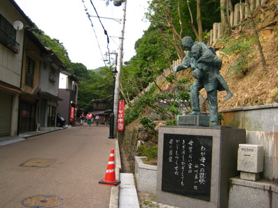 お母さんを背負った銅像が見えてきたら、もう少しです。